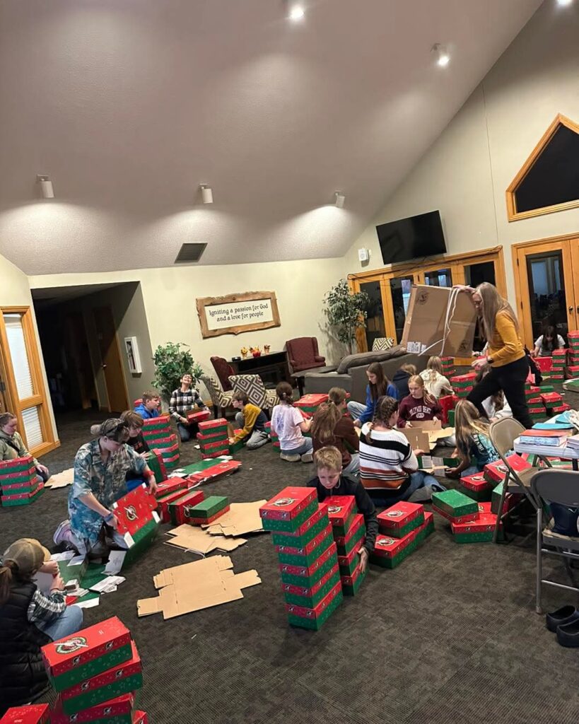 Putting together the Operation Christmas Child Shoeboxes!